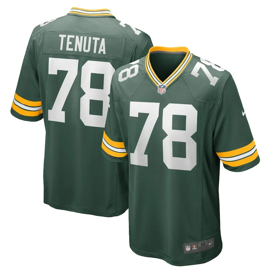 Rep the on-field look of your favorite Green Bay Packers player with this Luke Tenuta Game jersey by Nike. Its heat-sealed graphics provide a kickoff-ready aesthetic while also offering a comfortable, lightweight feel. Designed for everyday movement, this jersey has a tailored fit and features mesh side panels for added ventilation as you celebrate every big play by Luke Tenuta this season.