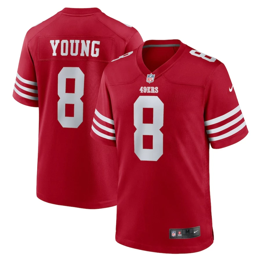 When Steve Young was on the field, opposing defenses knew they were in for a long game, so showcase your admiration of one of the top quarterbacks in NFL history with this exclusive San Francisco 49ers Game jersey from Nike. Complete with mesh panels for extra breathability, this jersey replicates the authentic look that the San Francisco 49ers wear on Sundays, giving you the perfect piece of gear for every game this season.