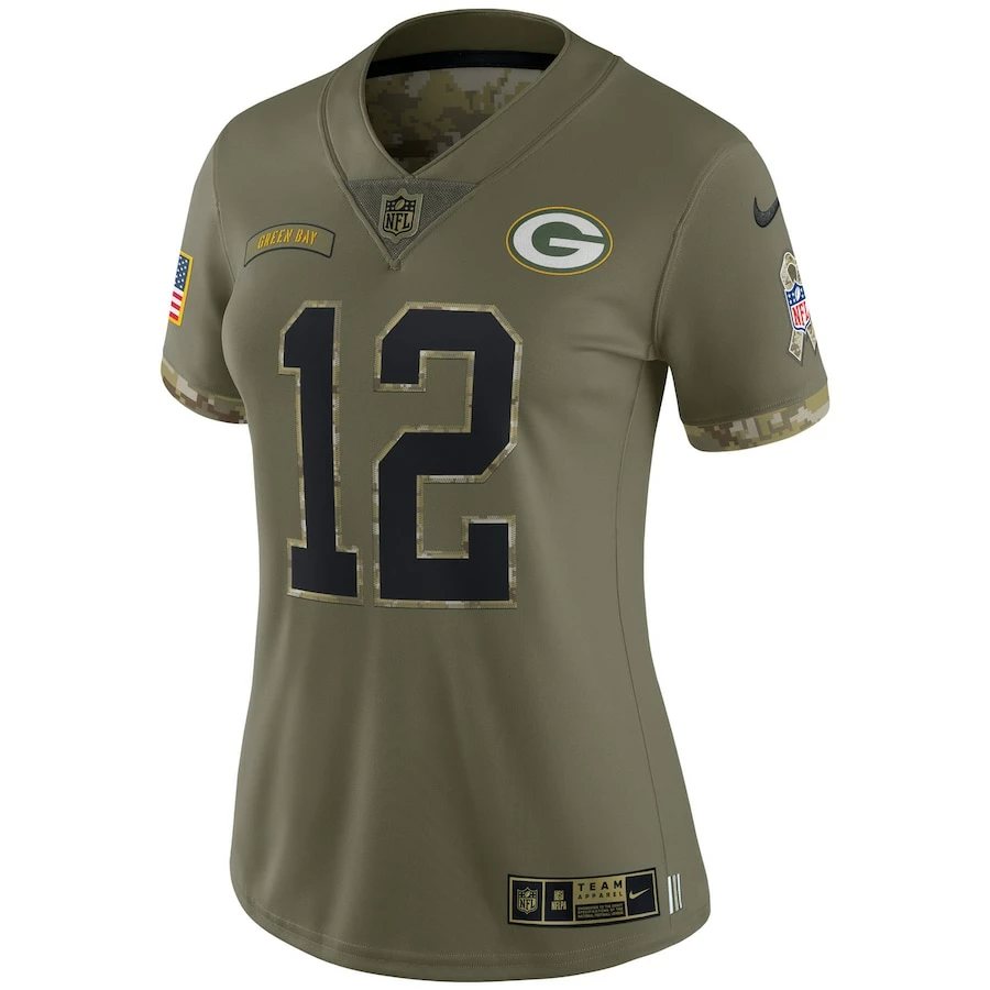 Women’s Green Bay Packers Aaron Rodgers Nike Olive 2022 Salute To Service Limited Jersey