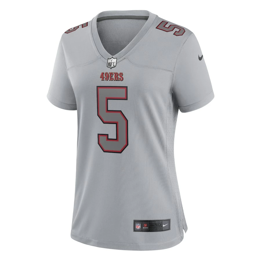 Up your San Francisco 49ers look with this Trey Lance Atmosphere Fashion Game jersey by Nike. Its tailored fit is designed for movement, and mesh side panels ensure you stay cool and comfortable all day long. Authentic team details make this Trey Lance jersey a standout piece in your San Francisco 49ers collection.